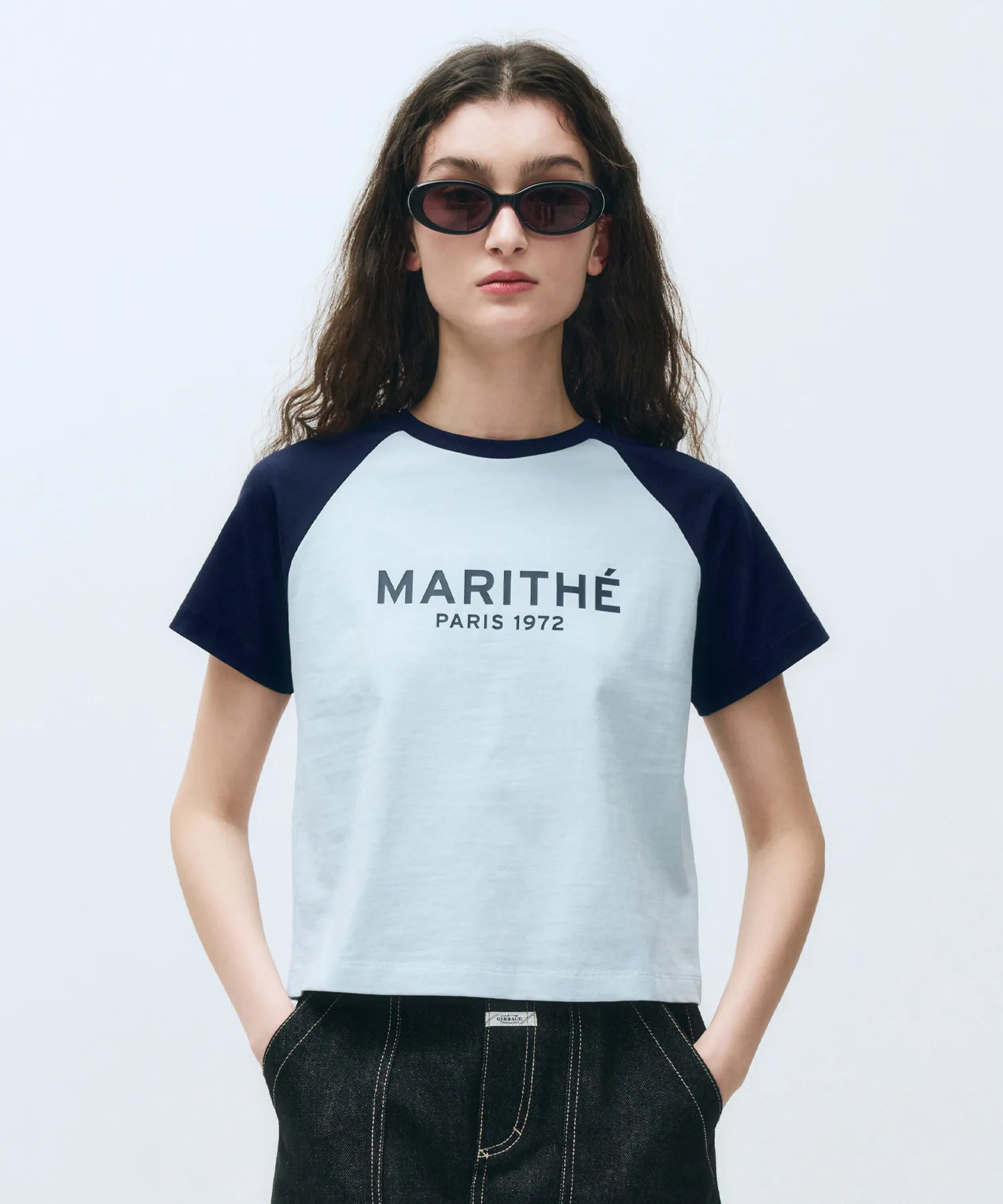 [Marithe] W Regular Logo Raglan Crop Tee